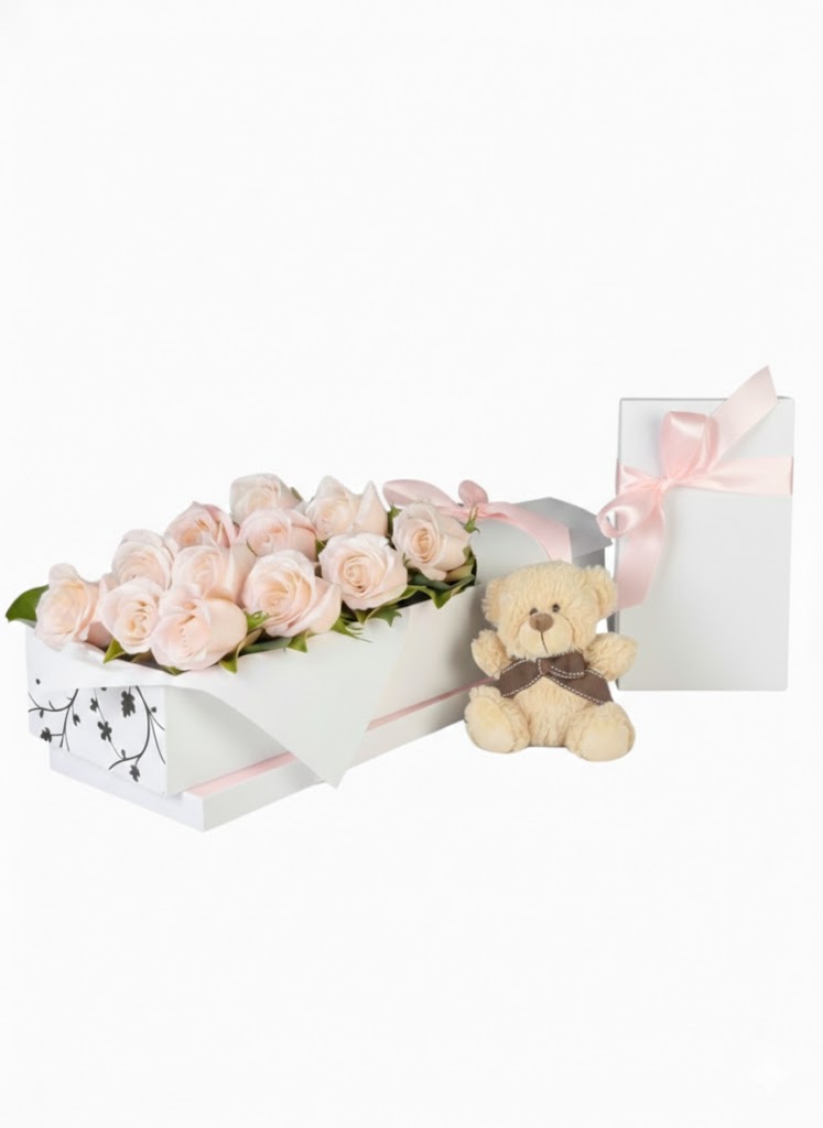 Send love in the softest way possible – with a fresh pink rose and an adorable teddy bear. Whether it’s a romantic gesture or a sweet surprise for someone special, Pink Hug says it all with one bloom and one cuddle.